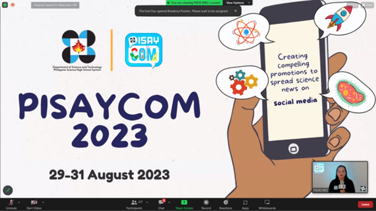 With the theme “Creating compelling promotions to spread science news on social media”, the PSHS System conducted PisayCom 2023, a system-wide event attended by selected scholars, held online last August 29-31.